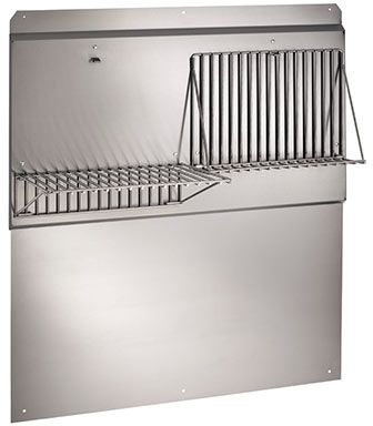 Restaurant-quality stainless steel backsplash with fold-down shelves completes the professional look when used with Broan Pro-style hoods and is easy to clean.