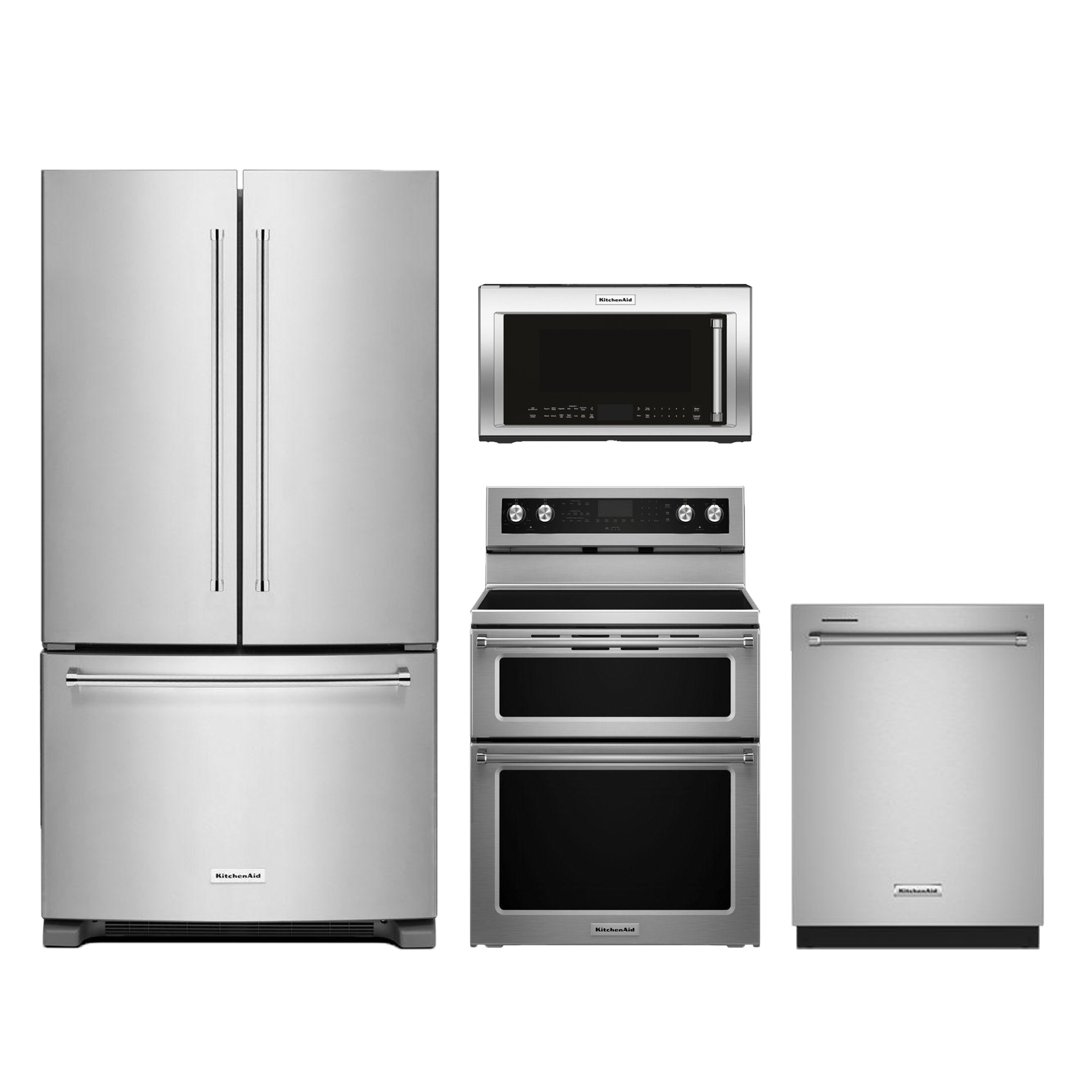 KitchenAid® 4 Piece Kitchen Package-Stainless Steel with french door refrigerator, free standing electric range, built in dishwasher and over the range microwaveRead More