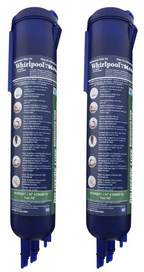 This PuR® Fast-Fill Refrigerator Water Filter is used in Whirlpool®, KitchenAid®, Maytag®, Amana®, and JennAir® Fast-Fill side-by-side refrigerators with filter access in the base grille. Simply press the release button to remove and replace the filter. This NSF® Certified filter reduces chlorine taste and odor, particulates (class I), lead, and mercury. Replace every 6 months ensures clean, safe drinking water. Contains 2 filters.