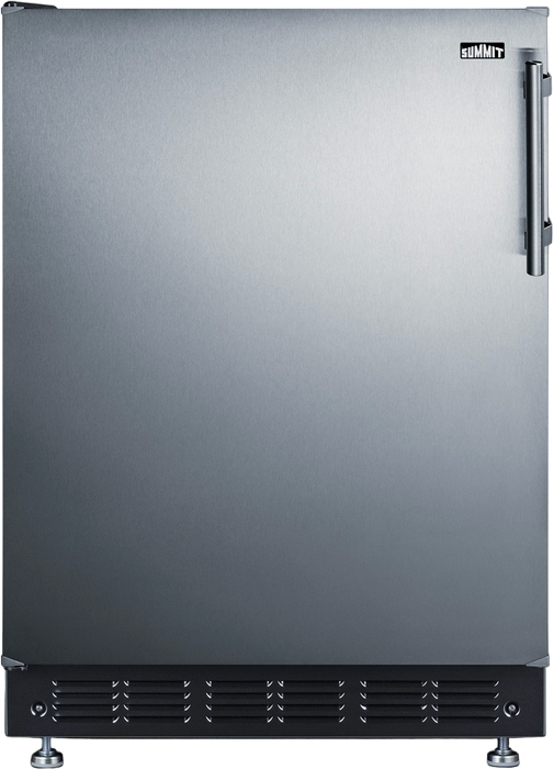 Sized with a 24" footprint, model FF6BK2SSRSLHD is an ENERGY STAR certified all-refrigerator designed for recessed installation or freestanding use in residential kitchens. The stainless steel door offers an elegant look for any kitchen, with a special coating that makes it easy to wipe off the surface for a fingerprint-resistant front. The stainless steel handle is side mounted for an easy grip and attractive look. This unit has a jet black exterior cabinet and runs quietly at less than 33 dB. Adjustable legs allow you to set the height between 33 1/2" and 34 1/2" for the perfect fit. We include a black steel leg shield for optional use if you find there is too much space between the front and floor when the unit is set at its taller height. It ships with a left hand door swing.